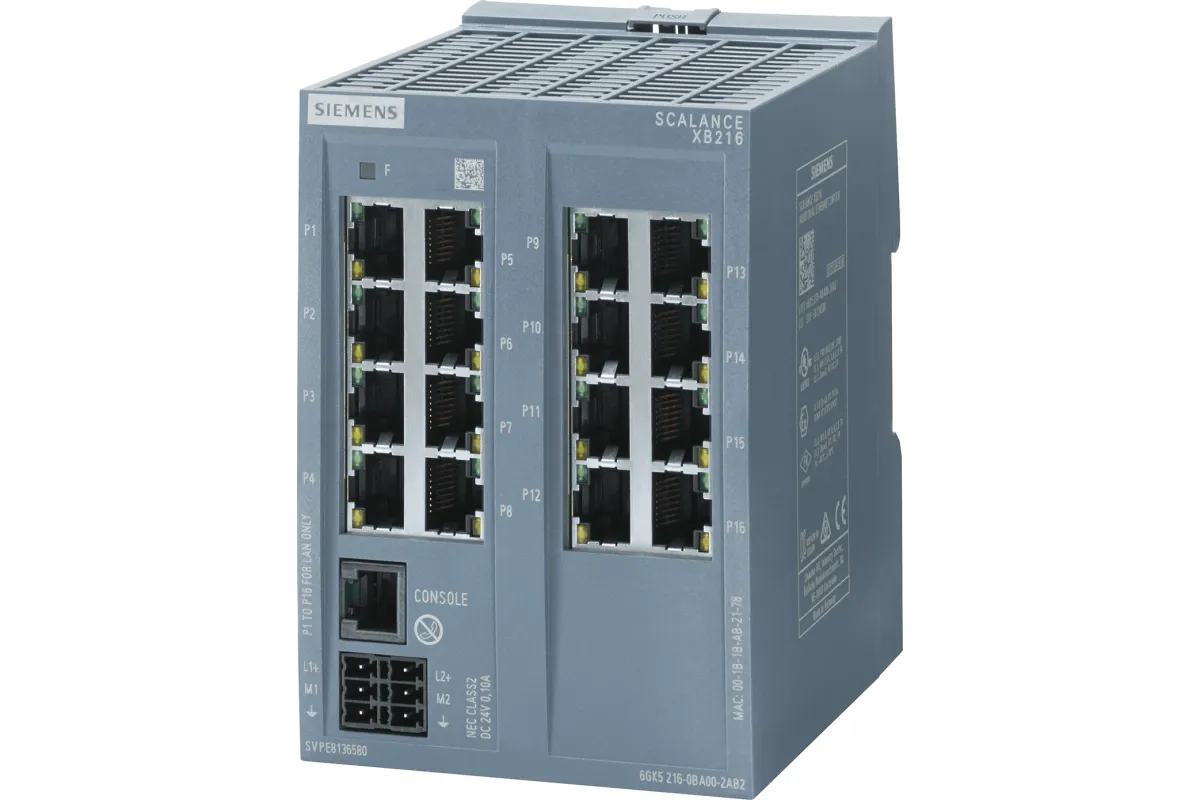 SCALANCE XB216 позволяет создавать надежные, управляемые сети для промышленной автоматизации, транспортной инфраструктуры, энергетических объектов и других критически важных систем. Устройство подходит для соединения контроллеров, панелей оператора, приводов и датчиков, обеспечивая высокую скорость и стабильность передачи данных. Благодаря поддержке функций второго уровня коммутатор обеспечивает контроль трафика, приоритизацию данных и защиту сетевых соединений, что повышает надежность и предсказуемость работы промышленных процессов.