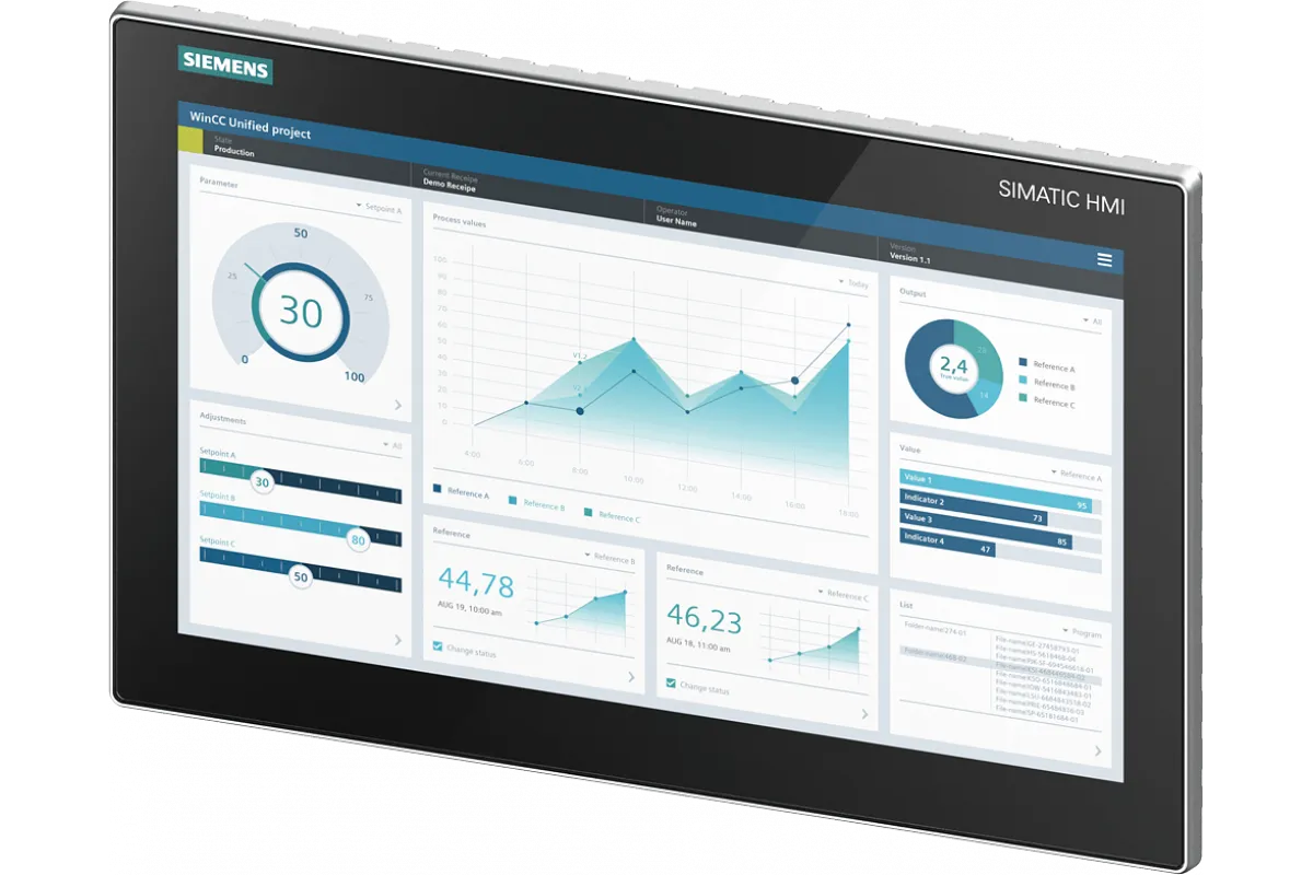 Панель оператора Siemens SIMATIC HMI MTP1500 Unified Comfort 6AV2128-3QB06-0AX1 представляет собой современное решение для визуализации и управления промышленными процессами. Панель оснащена высокопроизводительным сенсорным дисплеем и интуитивным интерфейсом, обеспечивающим удобное управление технологическими линиями и быстрый доступ к ключевым параметрам. MTP1500 Unified Comfort поддерживает интеграцию с различными контроллерами SIMATIC, включая S7-1200 и S7-1500, обеспечивая высокую совместимость и гибкость при построении промышленных систем автоматизации.