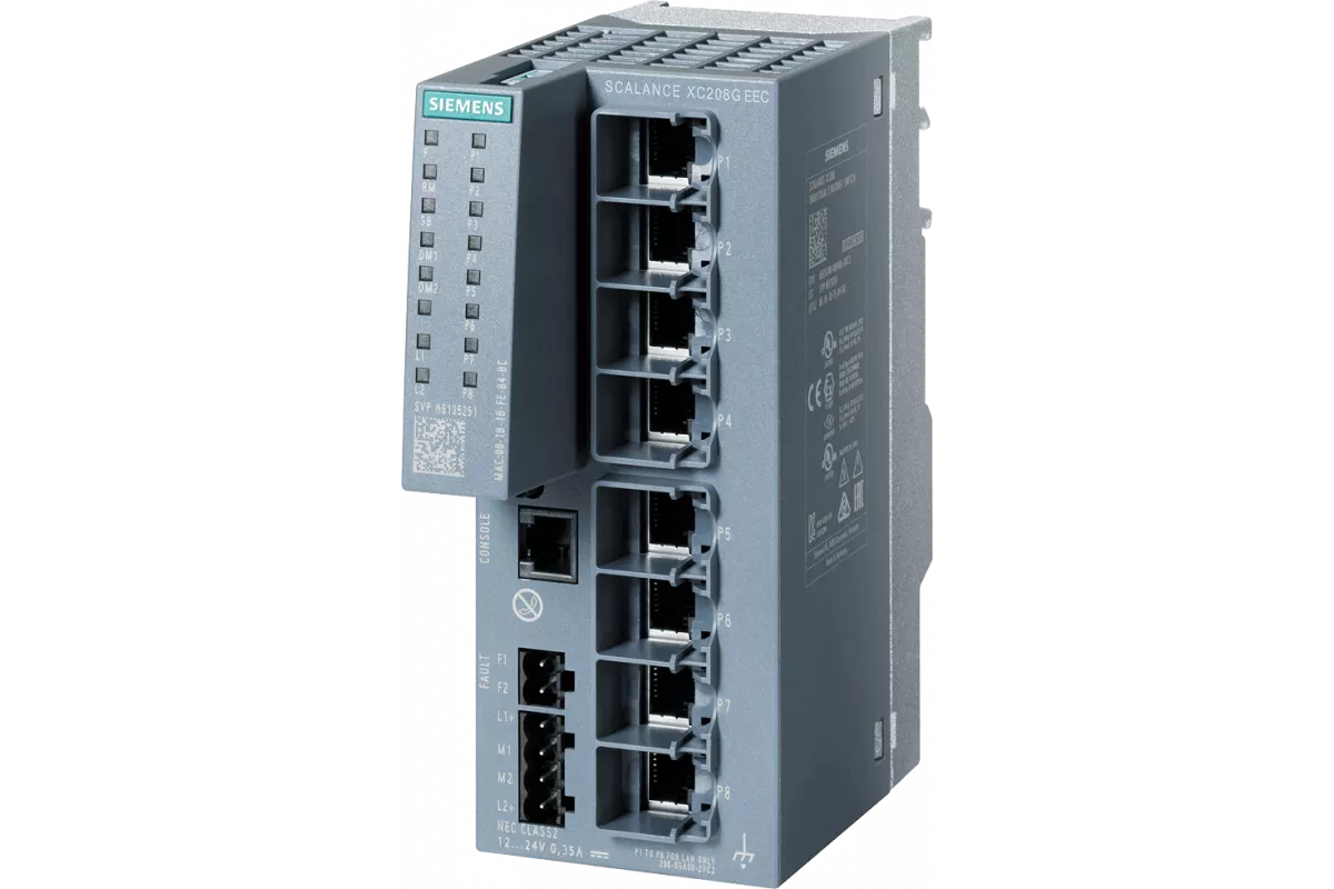 Управляемый промышленный коммутатор 6GK5208-0GA00-2FC2 от Siemens серии SCALANCE предназначен для построения высоконадежных сетей Industrial Ethernet в сложных условиях эксплуатации. Модель SCALANCE XC208G EEC относится к устройствам Layer 2 и обеспечивает стабильную передачу данных в системах промышленной автоматизации.