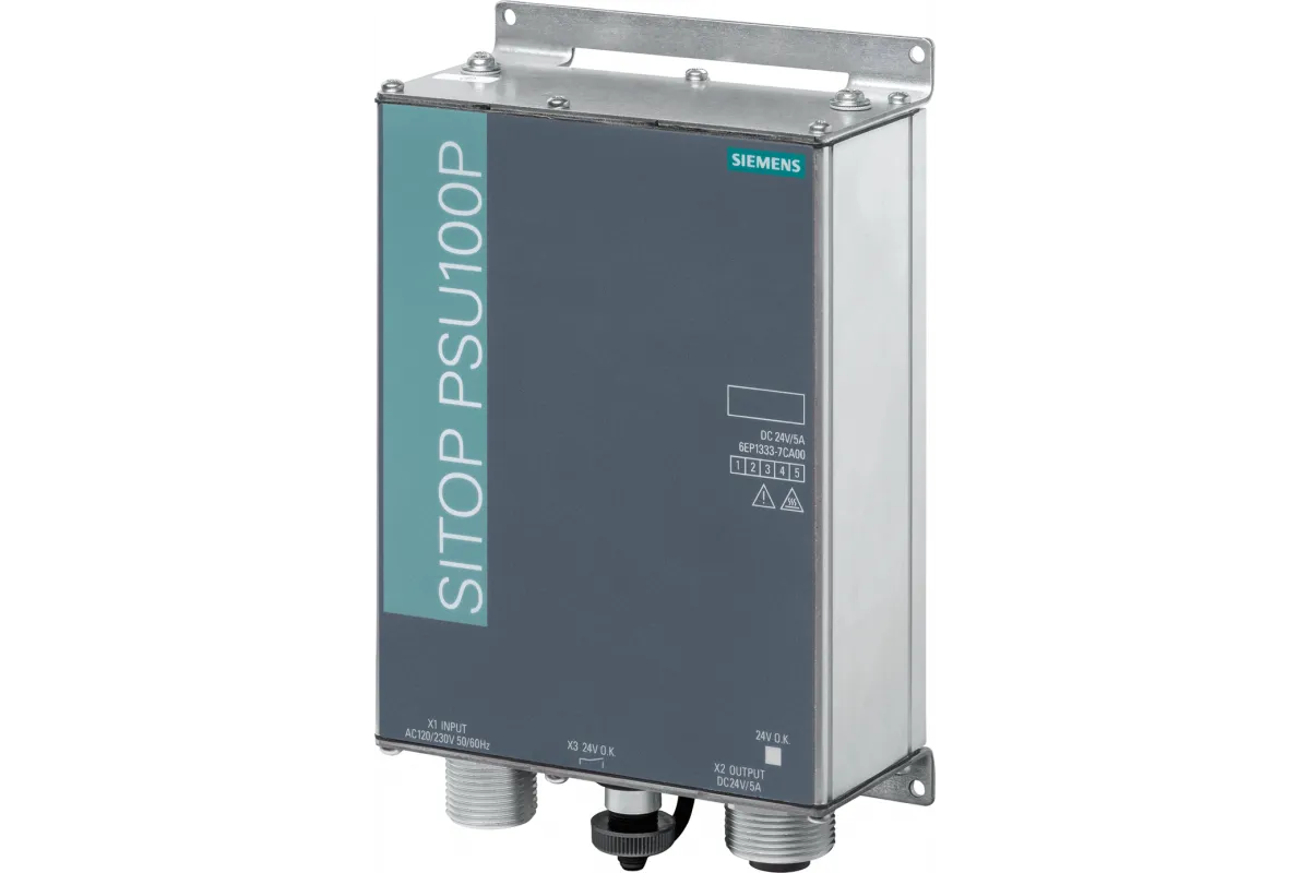 Блок питания 6EP1333-7CA00 от Siemens серии SITOP PSU100P представляет собой надежное решение для обеспечения стабильного электропитания в промышленных системах автоматизации. Устройство выполнено в защищенном исполнении с классом защиты IP67, что позволяет использовать его в условиях повышенной влажности, пыли и механических воздействий без необходимости установки в шкаф.