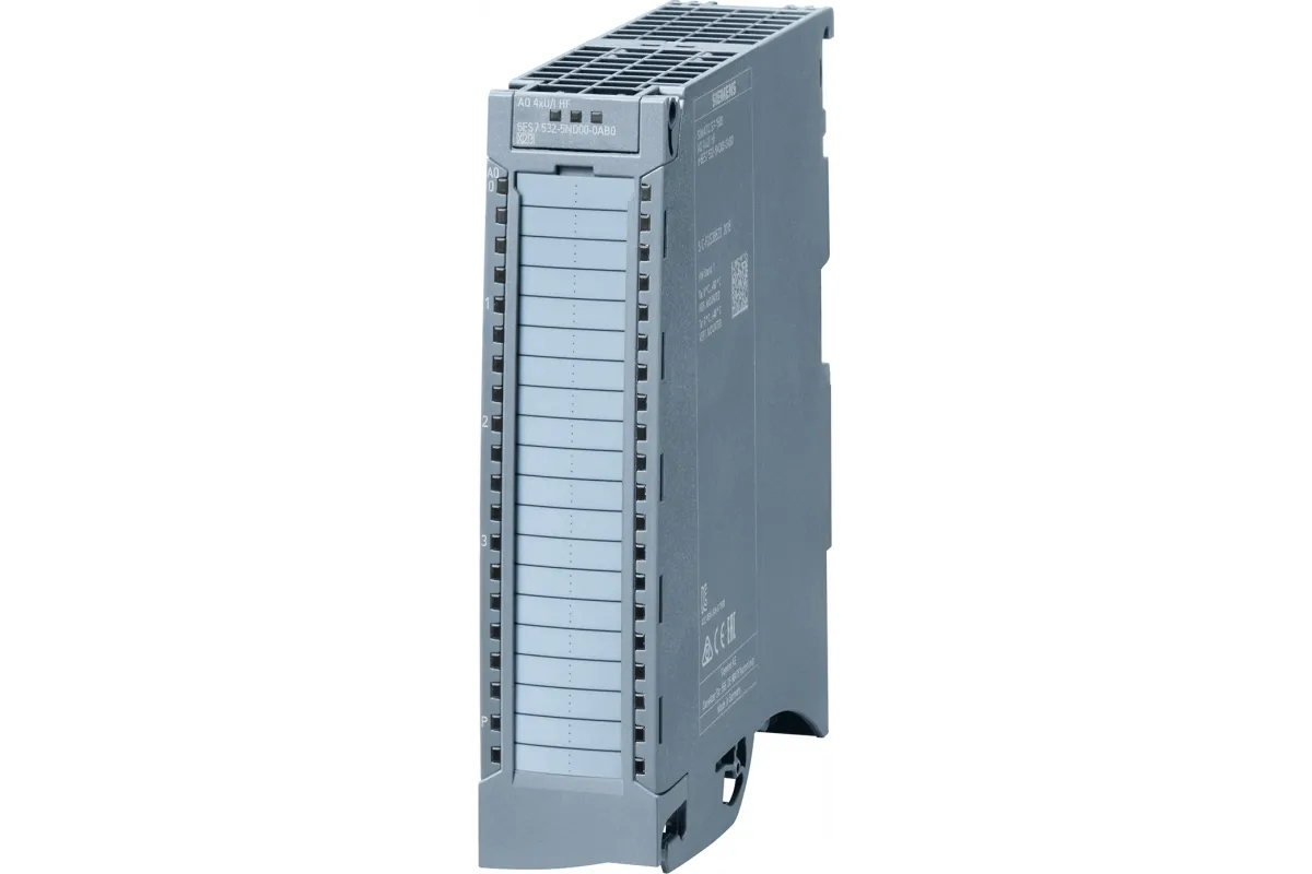 Модуль аналоговых выходов 6ES7532-5ND00-0AB0 от Siemens серии SIMATIC S7-1500 предназначен для высокоточной обработки аналоговых сигналов в системах промышленной автоматизации. Модель AQ 4xU/I HF обеспечивает надежное управление исполнительными устройствами с использованием сигналов напряжения и тока.